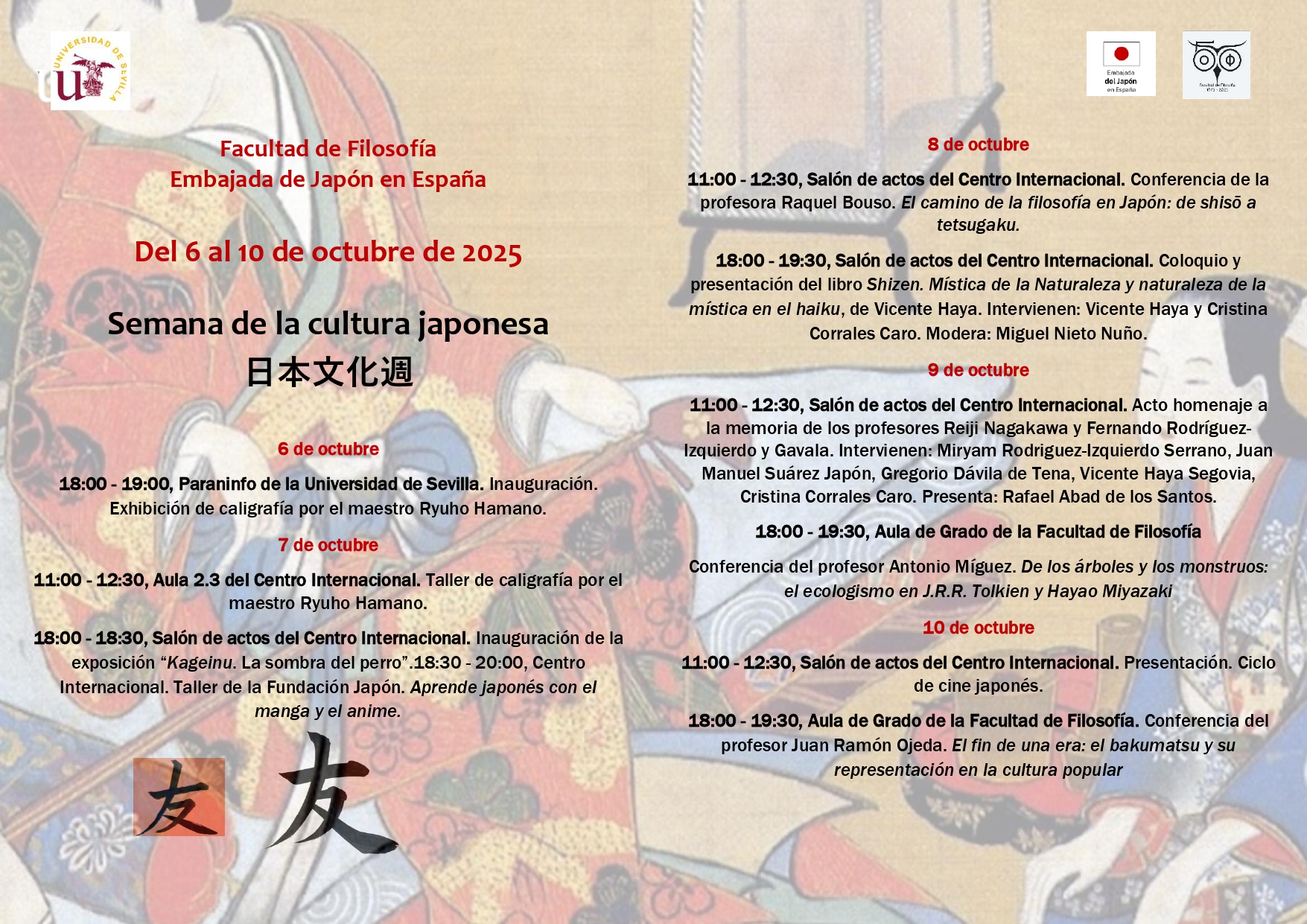 Semana de la cultura japonesa (Fecha: 6 al 10 de octubre de 2025). 30 Sep 2025 PROGRAMA DE LA SEMANA DE LA CULTURA JAPONESA